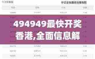 香港是全球著名的赌博与博彩中心之一,各种博彩活动为这个国际大都市注入了活力与经济收益。特别是在香港,彩票、赛马会和其他各种博彩网站已成为人们娱乐生活的一部分。其中,494949最受欢迎的开奖方式之一,为玩家们提供了便捷快速的开奖体验。该标签不仅代表着一种开奖的速度,更是触动了众多玩家的心弦,他们迫切想要了解这个数字背后的故事。