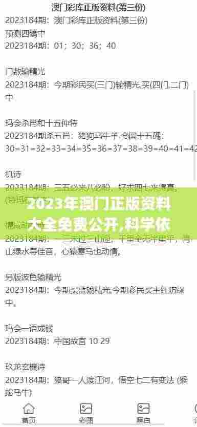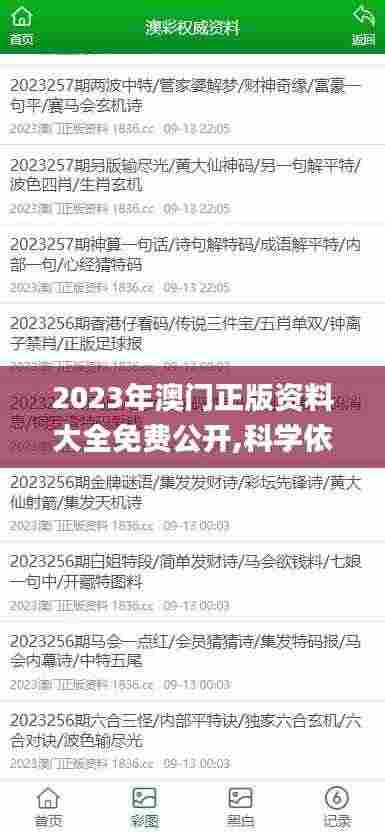 在当今信息高度普及的时代,资料获取的途径多种多样。然而,面对五花八门的资料,尤其是涉及科学内容的官方网址和出版物,我们必须格外谨慎。2023年,澳门正版资料大全免费公开,提供了一个让大众接触科学知识和学术研究的新窗口。本文将探讨澳门最新公开资料的特性及其科学依据,为广大读者解读这些资源的重要性和应用价值。