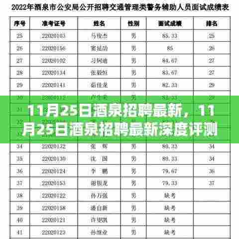 随着就业市场的日益活跃,招聘信息的及时性和准确性对于求职者来说至关重要,本文将对“11月25日酒泉招聘最新”进行详尽的评测与介绍,从产品的特性、使用体验、与竞品对比、优点与缺点以及目标用户群体分析等方面,为求职者提供专业、全面的信息。