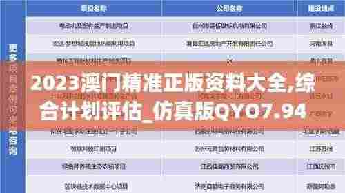 在现代社会中,信息获取的途径多种多样,尤其是在教育、科研、以及其他专业领域,获取准确、有效的信息资源显得尤为重要。2023澳门精准正版资料大全作为一种高效的资源整合工具,其重要性不言而喻。本文将详细探讨这一资源如何帮助用户获取最新的、最准确的信息,并对其应用领域进行深入分析。
