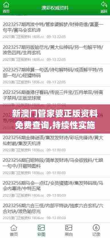 在现代社会中,信息的获取成为了人们生活中不可或缺的一部分。对于投资者、商家、以及普通消费者来说,能及时获取有关市场和产品的真实资料,已成为决策的重要依据。其中,澳门尤其以其丰富的商业文化和独特的市场魅力,吸引了众多投资和消费的目光。在这样的背景下,“新澳门管家婆正版资料免费查询”成为了一个热门话题,为那些希望了解澳门市场的个体和组织打开了一扇新视窗。