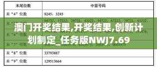 澳门开奖结果,开奖结果,创新计划制定_任务版NWJ7.69