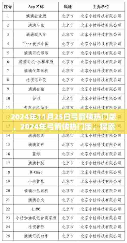 随着科技的飞速发展和游戏产业的持续创新,我们迎来了2024年的全新时代,在这个时代里,经典的角色不断焕发新生,其中就包括深受玩家喜爱的“弓箭侠”,本文将围绕“2024年11月25日弓箭侠热门版”这一主题,为您揭示最新弓箭侠游戏的发展脉络及其独特魅力。