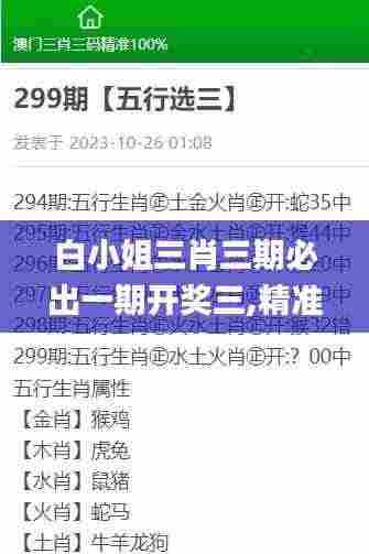 “白小姐”是中国彩票文化中一种广为流传的称谓,通常指代一些能够提供准确预测与分析的彩票信息的来源。在彩票的世界里,很多人都在寻求依靠某些规律、技巧来提高自己的中奖概率。尤其是“三肖三期必出一期”的说法,引起了不少彩民的关注,这个概念的核心在于从历史数据中寻找规律,力求通过数据分析实现更高的中奖率。