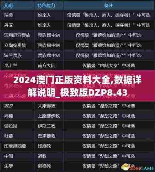 2024澳门正版资料大全:数据详解说明_极致版DZP8.43