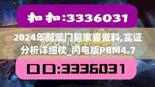随着2024年的到来,新澳门管家婆资料成为了众多彩民和研究者关注的焦点。这份资料不仅包含了最新的数据和信息,还通过实证分析为人们提供了参考价值。本文将详细介绍2024年新澳门管家婆资料,并结合闪电版PBM4.7进行分析,以帮助读者更好地了解这一领域。