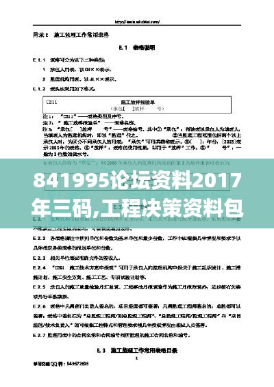 841995论坛资料2017年三码和工程决策资料在项目实施过程中具有重要作用。通过合理运用这些资料,项目团队可以更好地进行工程决策,确保项目顺利进行。在未来的项目实施中,我们应继续关注841995论坛提供的各类资料,为我国工程建设贡献力量。