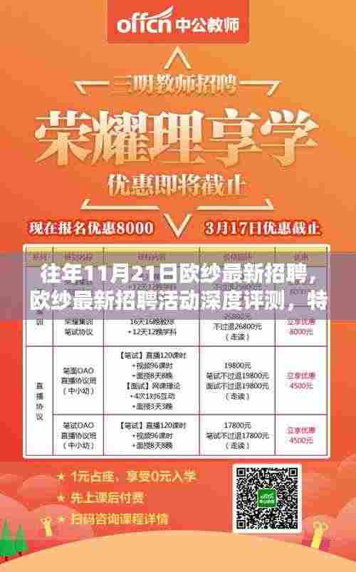 随着季节的转换,每年的招聘旺季如期而至,作为行业内的重要招聘活动举办者之一,欧纱公司在往年11月21日举办的最新招聘活动吸引了众多求职者的目光,本文将对该招聘活动进行详尽的评测介绍,涵盖产品特性、使用体验、与竞品对比以及目标用户群体分析,以便求职者做出明智的选择。