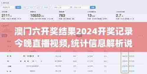 在如今信息化高速发展的时代,澳门六开奖结果成为了许多人关注的焦点。无论是对投注者还是对彩票爱好者来说,澳门六开奖结果2024开奖记录今晚直播视频不仅是在获取数据,更是一种娱乐享受和交流互动的平台。本文将对澳门六开奖结果2024开奖记录今晚直播视频进行深入分析,并为大家提供相关的统计信息解析,以便于大家更好地理解这一现象。