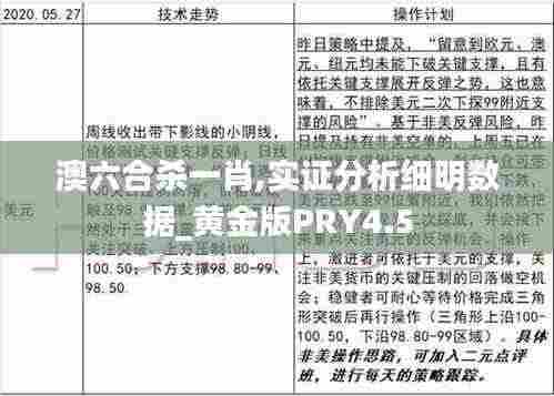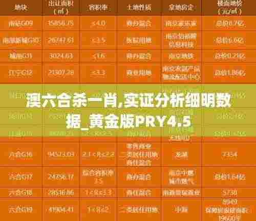 在当今时代,数据分析和实证研究已经成为各个领域不可或缺的工具。本文将以“澳六合杀一肖”为例,通过实证分析细明数据,探讨其在黄金版PRY4.5中的运用,以期为相关领域提供有益的参考。