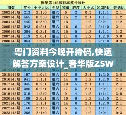粤门资料今晚开奖待码,是许多彩民关注的焦点。为了帮助大家更好地了解开奖信息,本文将提供快速解答方案设计,特别是针对奢华版ZSW8.71。以下是文章内容: