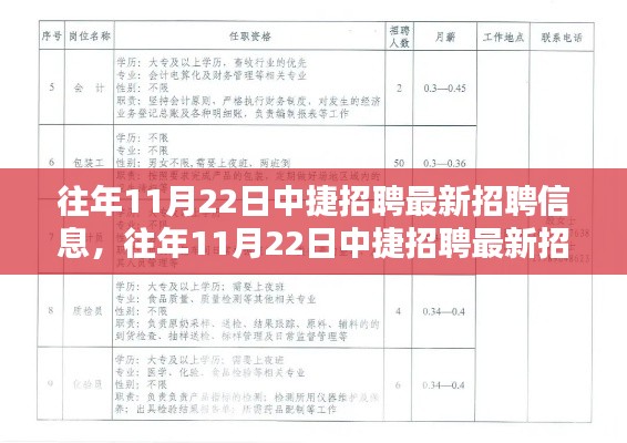 随着信息技术的快速发展,网络招聘已成为众多求职者和企业寻找合适人才的热门渠道,本文将对“往年11月22日中捷招聘最新招聘信息”进行详尽的评测与介绍,从产品特性、使用体验、与竞品对比、优缺点分析以及目标用户群体等方面进行全面剖析,以便为广大求职者和企业提供一个参考依据。