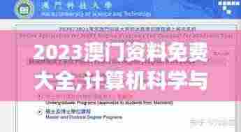 在计算机科学与技术领域,寻找高质量的资料和资源对于学习、研究和实践都至关重要。2023年,一份全新的澳门资料免费大全震撼上线,为广大计算机科学与技术爱好者、设计师们提供了一个宝贵的资源库。本文将为您详细介绍这份资料大全,帮助您快速找到所需资源,提升个人技能。
