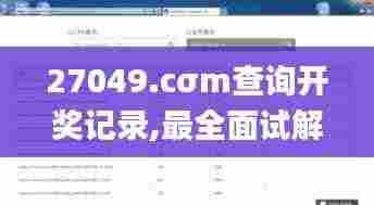 2. 查询开奖记录:在27049.cσm查询开奖记录首页,您可以看到最新的彩票开奖信息。点击相应彩票种类的开奖记录,即可查看历史开奖数据。
