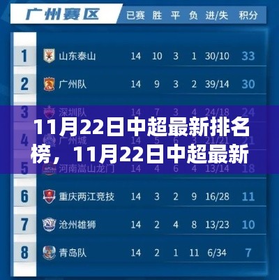 随着秋意渐浓,中国足球超级联赛(CSL)也迎来了新一轮的激烈角逐,11月22日,中超联赛战火重燃,各支球队为了荣誉和排名展开了一场场精彩对决,本文将为您带来11月22日中超最新排名榜的解读,并重点分析其中的要点、要点二和要点三。