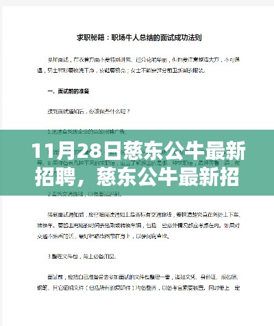 当我们得知慈东公牛有最新招聘时,作为应聘者,我们需要对招聘公告进行详尽的了解,这包括但不限于招聘的职位、工作职责、任职要求、工作地点以及公司背景等信息。