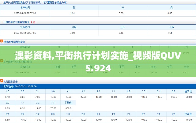在当今竞争激烈的市场环境中,企业的运营效率和执行力直接影响其市场地位和发展潜力。澳彩资料作为一项重要的管理工具,不仅帮助企业收集和分析数据,还能促进平衡执行计划的实施。本文将深入探讨澳彩资料在平衡执行计划实施过程中的作用,并通过视频版QUV5.924为例,分析其在实际应用中的效果与挑战。