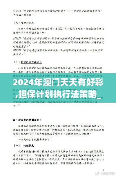 为了确保在复杂的市场环境中能够稳健前行,制定一套全面的担保计划是至关重要的。担保计划的核心在于评估和管理风险,通过设置相应的财务和法律保障措施,为投资者和企业提供安全感。在2024年澳门天天有好彩的背景下,一份完善的担保计划将帮助企业更好地应对风险挑战,确保在激烈的市场竞争中立于不败之地。