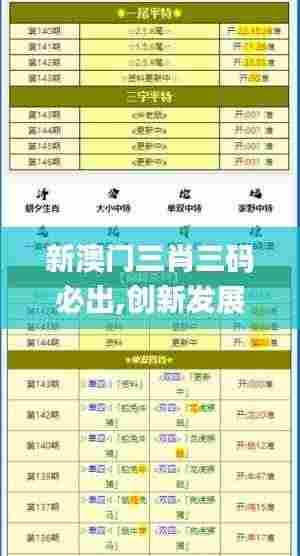 新澳门三肖三码必出的理念为澳门的发展指明了方向。通过实施一系列创新发展策略,澳门有望在经济、文化、旅游等多个领域实现全面发展。面对未来,澳门需要不断适应变化,把握机遇。借助国家的支持与全球化的浪潮,澳门必将在新时代焕发出新的活力,实现经济腾飞与社会进步的双重目标。