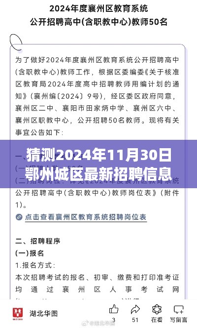 随着科技的飞速发展和鄂州地区经济的持续增长,招聘市场也在不断地更新迭代,本文将围绕“猜测2024年11月30日鄂州城区最新招聘信息”这一主题,对鄂州城区的招聘市场进行深入评测,从产品特性、使用体验、竞品对比、目标用户群体分析等方面展开探讨,旨在为求职者、企业和相关研究人员提供有价值的参考信息。
