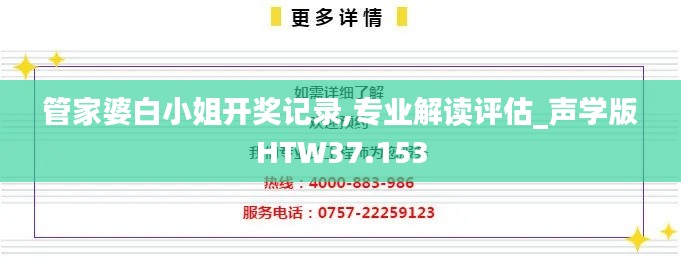 在当今信息化时代,各类数据分析与评估工具层出不穷。尤其在声学领域,数据的解析与评估显得尤为重要。而“管家婆白小姐开奖记录”作为一种流行的查询工具,让广大用户能够快速获取所需信息,并进行有效的决策。本文将深入探讨“管家婆白小姐开奖记录”的特点与应用,结合声学版HTW37.153进行专业解读与评估,帮助读者更好地理解这一领域的动态与发展。
