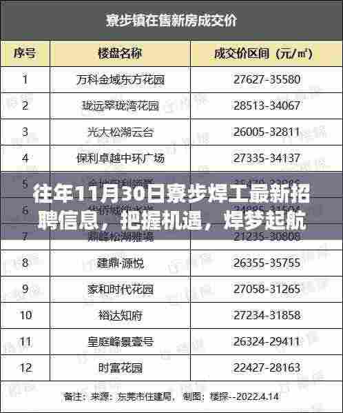 每年的这个时候,空气中似乎都弥漫着一种期待与变化的气息,十一月末的阳光照亮了每一个角落,也照亮了无数追求梦想的心,就在今天,寮步地区发布了最新的焊工招聘信息,这不仅是一个求职的机会,更是一个鼓励我们勇敢面对变化、不断学习的励志时刻。