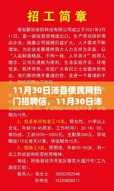 随着信息技术的快速发展,网络招聘已成为众多求职者和企业寻找合适人才的热门渠道,特别是在疫情常态化的背景下,线上招聘市场愈发活跃,本文将重点关注11月30日沛县便民网的最新招聘信息,为广大求职者提供第一手资料,助你快速找到心仪的工作。