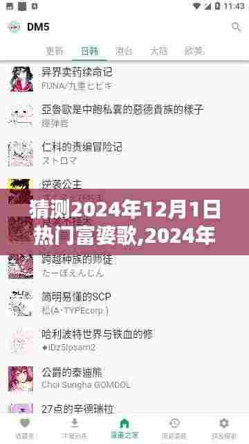 摘要:,,据预测,2024年12月1日将有一首热门富婆歌曲闪耀登场,成为时代的旋律。这首歌曲背景充满现代都市气息,反映了现代富婆们的独立、自信与魅力。其旋律动听,歌词富有感染力,一经推出便受到广泛关注和热议。这首歌曲对社会产生了积极的影响,激发了女性追求自我、实现梦想的勇气。它也成为了时尚潮流的代表,引领着新的文化风尚。