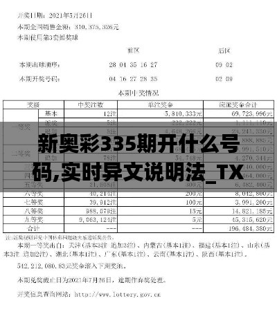 在数字彩票的分析和研究中,实时异文说明法逐渐成为重要的工具,通过这种方法,可以对新奥彩335的历史成绩进行深度分析,从而对即将到来的新奥彩335开奖做出更精准的预测,实时异文说明法通过对比与分析过往数据,帮助彩民发现规律,提取有效信息,提升投注策略,增加中奖可能性。