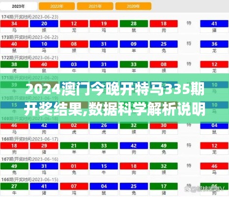 对于2024澳门今晚开特马335期开奖结果,我们无法预测具体的结果,但通过数据科学的分析,我们可以为参与者在决策时提供一定的参考依据,但无论如何,都需要保持理性、谨慎的态度,正确对待博彩活动可能带来的风险。