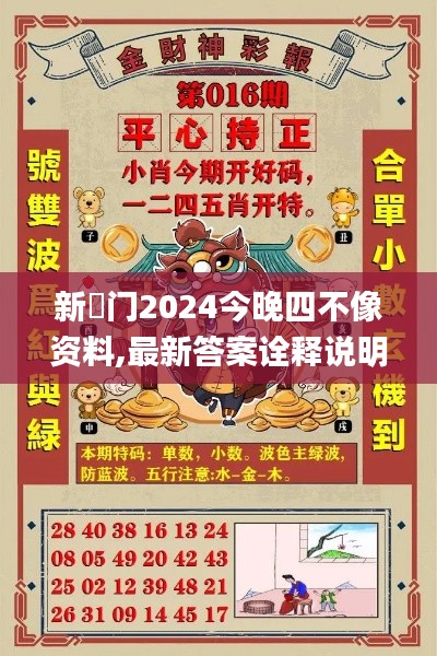 在设计行业蓬勃发展的今天,"新澚门2024今晚四不像资料"无疑是一个重要的指引,帮助设计师在激烈的竞争中找到自己的定位。掌握这一资料,理解其背后的设计理念,能够为设计师的创作注入新的动能。