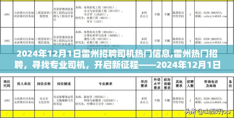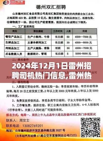 亲爱的朋友们,大家好!让我们一起走进雷州这片充满活力和机遇的土地,感受这里的招聘热潮,本文将重点关注于即将到来的2024年12月1日雷州的司机招聘信息,我们将一起探讨这场招聘背后的故事,分析热门信息,并为你提供详尽的求职指南。