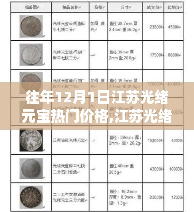 通过权威的古钱币收藏网站或APP,查找往年12月1日的江苏光绪元宝的热门价格,也可以关注线下市场的价格动态。