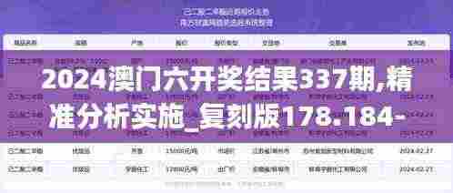 澳门六开奖,顾名思义,是一种每期随机开出六个数字的彩票游戏,这些数字的组合不仅能带来巨额奖金,更承载着无数彩民的梦想与期待,在当期开奖中,数字337及其相关的复刻版数字组合178和184-8成为了众人关注的焦点。