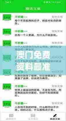 获取澳门免费资料最准的资料,是投资者和游客在澳门活动中不可或缺的一部分。准确、及时的信息不仅可以帮助人们做出科学决策,还能提升参与活动的乐趣与安全感。无论是博彩还是旅游,澳门天下彩提供的实时资料都将成为你获得成功的重要保障。在未来,随着各大平台不断优化信息更新机制,我们有理由相信,获取澳门免费资料将变得更加便利和高效。
